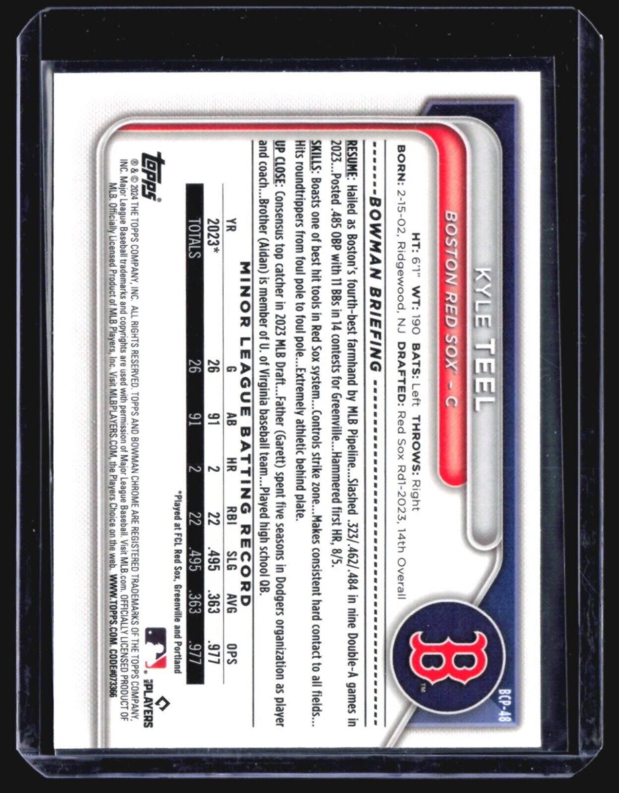 You are purchasing a 2024 Bowman Kyle Teel #BCP-48 Rookie. You will receive the exact card in the photographs. Thank... Read more