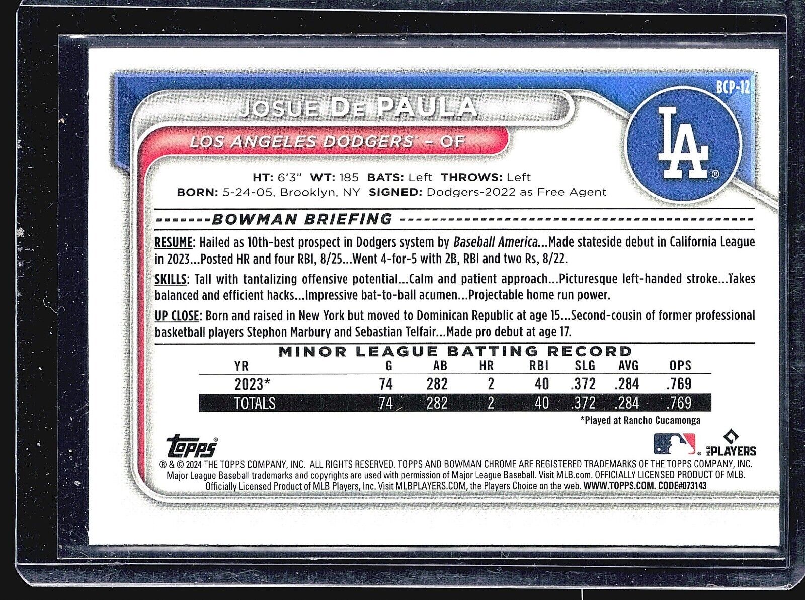 2024 Bowman Chrome Prospects green lunar #BCP-12 Josue De Paula (RC)