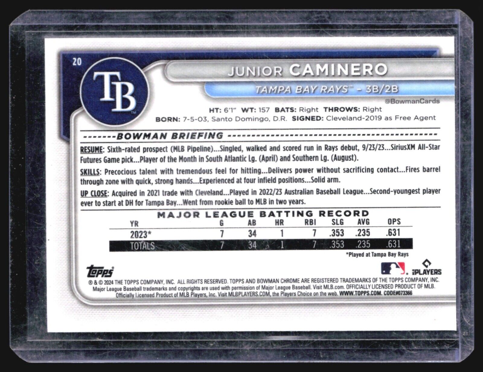 You are purchasing a 2024 Bowman Junior Caminero #20. You will receive the exact card in the photographs. Thank you... Read more