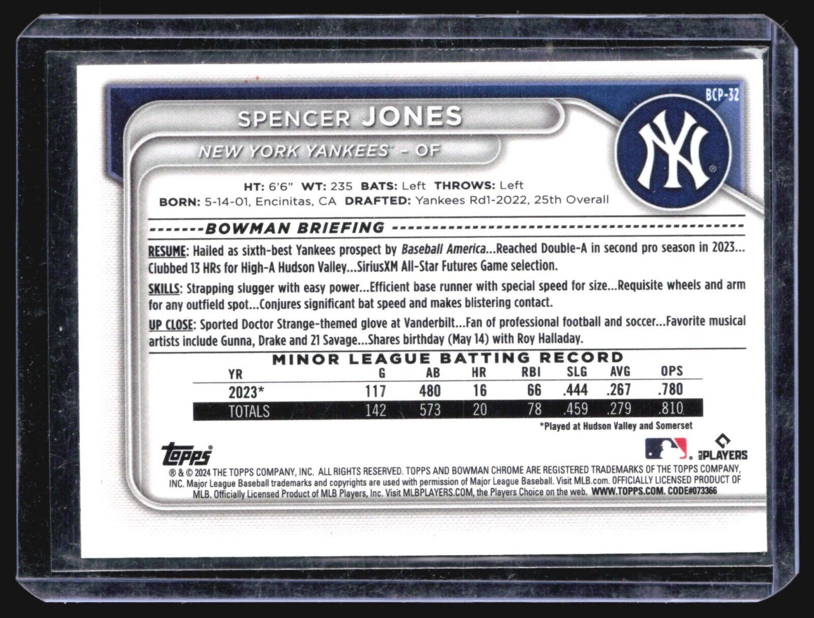 You are purchasing a 2024 Bowman Spencer Jones #BCP-32. You will receive the exact card in the photographs. Thank you... Read more