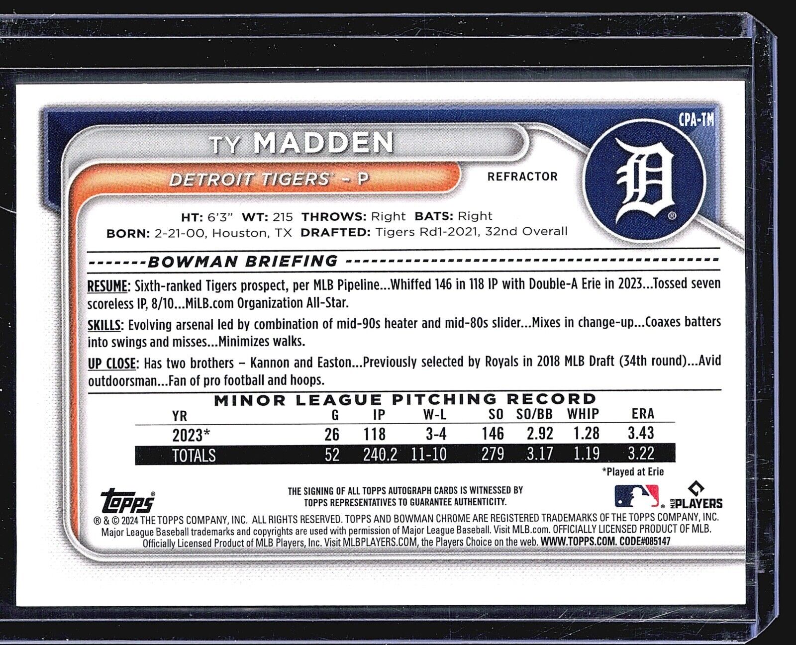 2024 Bowman Chrome Refractor Auto Ty Madden #2 /499
