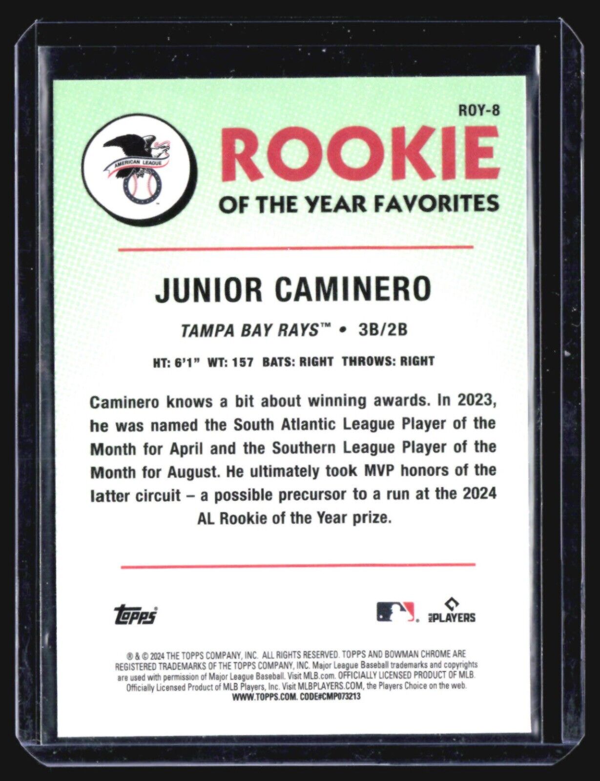 2024 Bowman Chrome Rookie of the Year Favorites #ROY-8 Junior Caminero (RC)