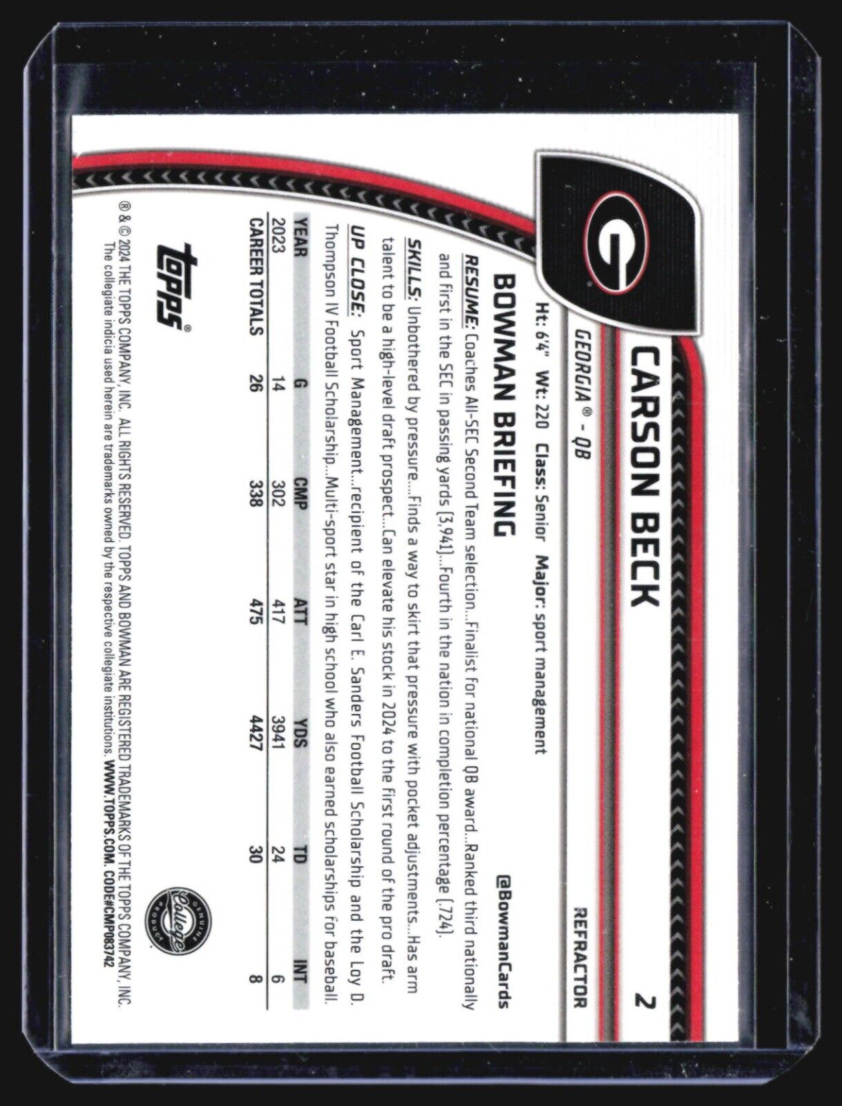 You are purchasing a 2024 Bowman Carson Beck #2. You will receive the exact item in the photographs. Thank you... Read more
