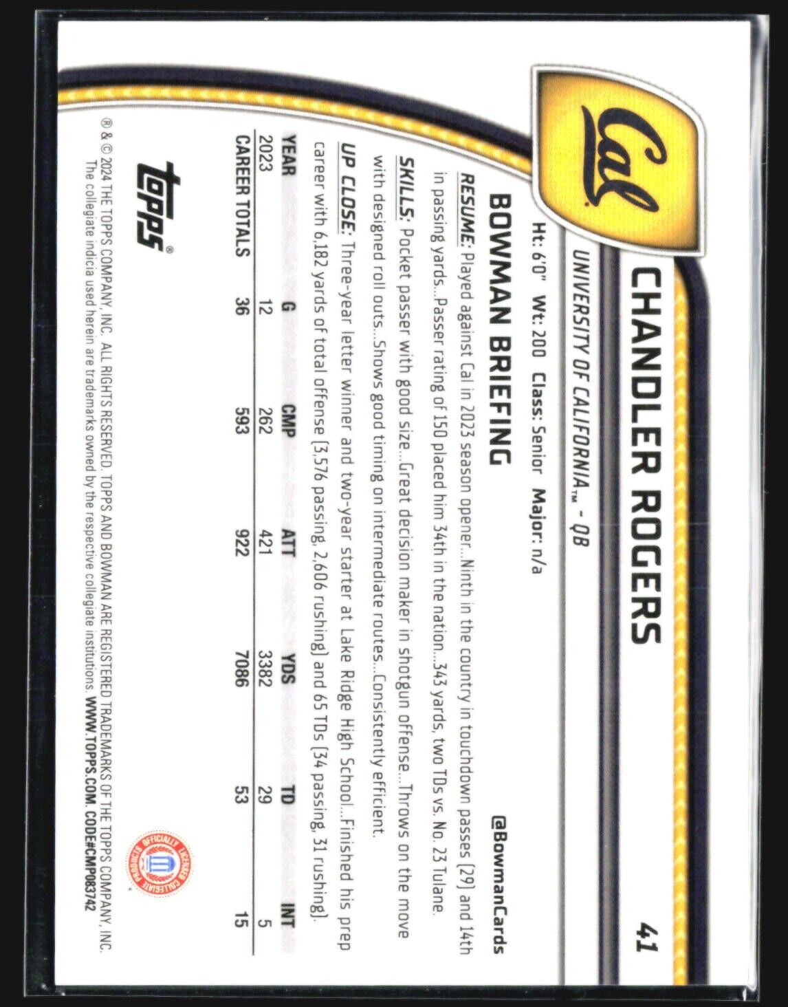 2024 Bowman Chrome U Chandler Rodgers 1st Purple Speckle /375 #41