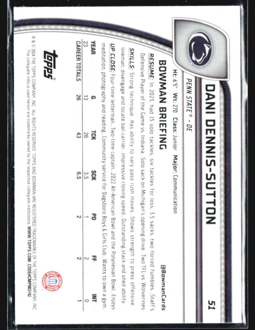 2024 Bowman Chrome U Dani Dennis Sutton Xfractor #51