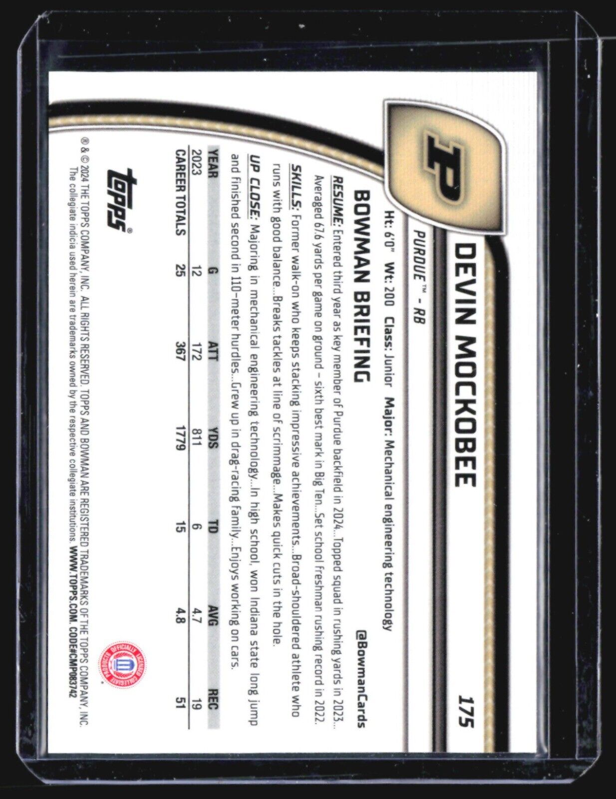 2024 Bowman Chrome U Devin Mockobee Aqua Refractor /299 #175