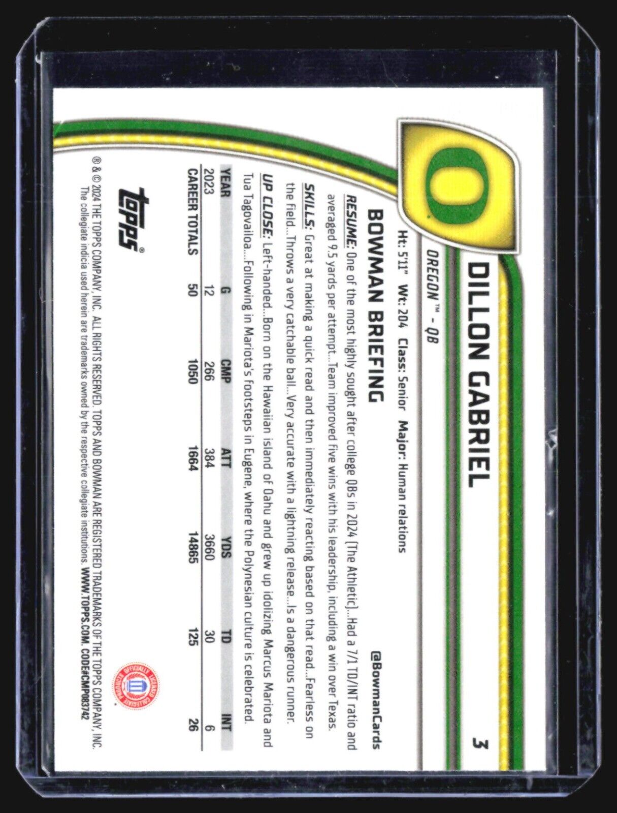 2024 Bowman Chrome U Dillon Gabriel Purple Shimmer #3