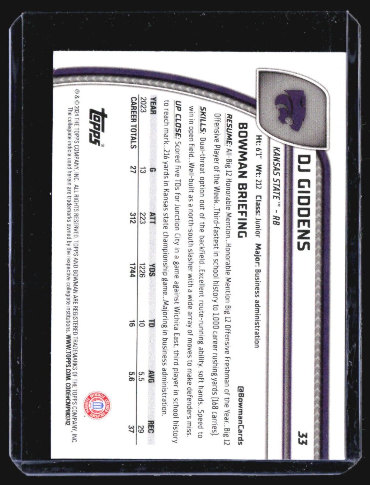 2024 Bowman Chrome U DJ Giddens 1st Xfractor #33