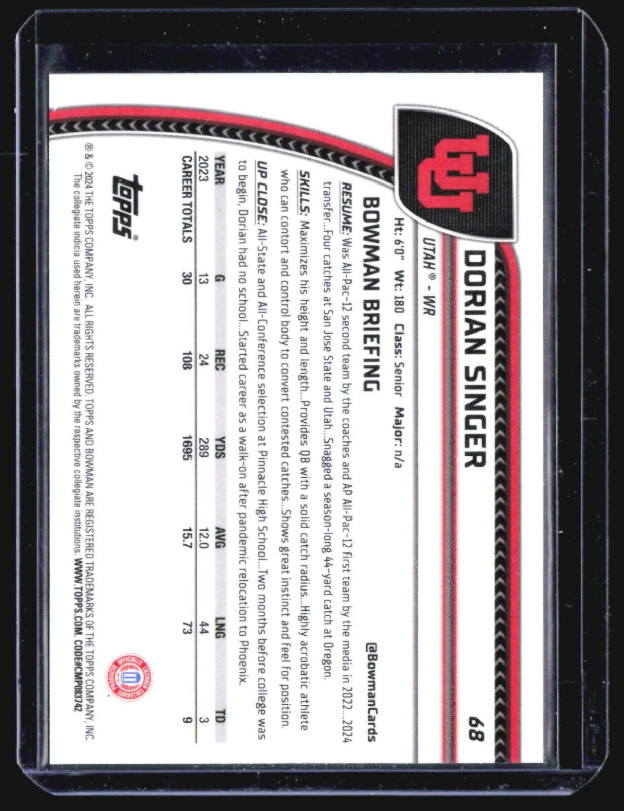 2024 Bowman Chrome U Dorian Singer Green Wave /99 #68