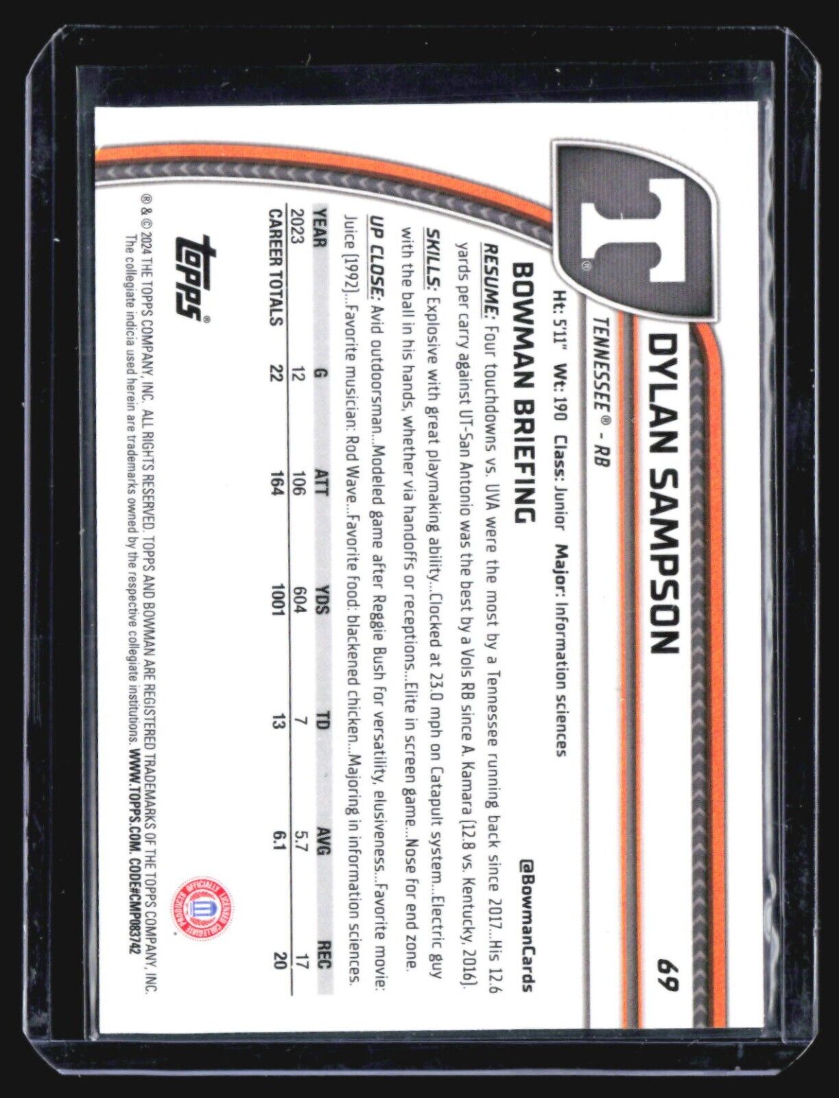 2024 Bowman Chrome U Dylan Sampson 1st Gold /50 #69