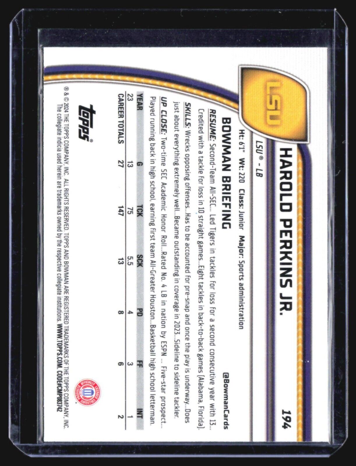 2024 Bowman Chrome U Harold Perkins Blue Speckle /175 #194