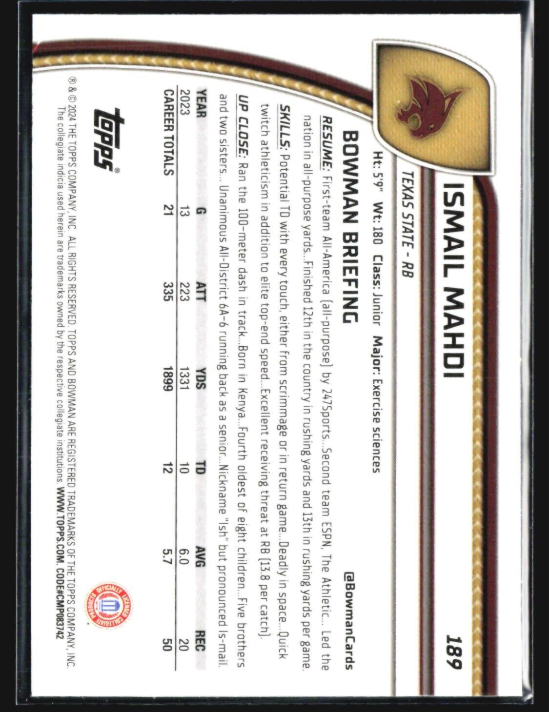 2024 Bowman Chrome U Ismail Mahdi 1st Xfractor #189