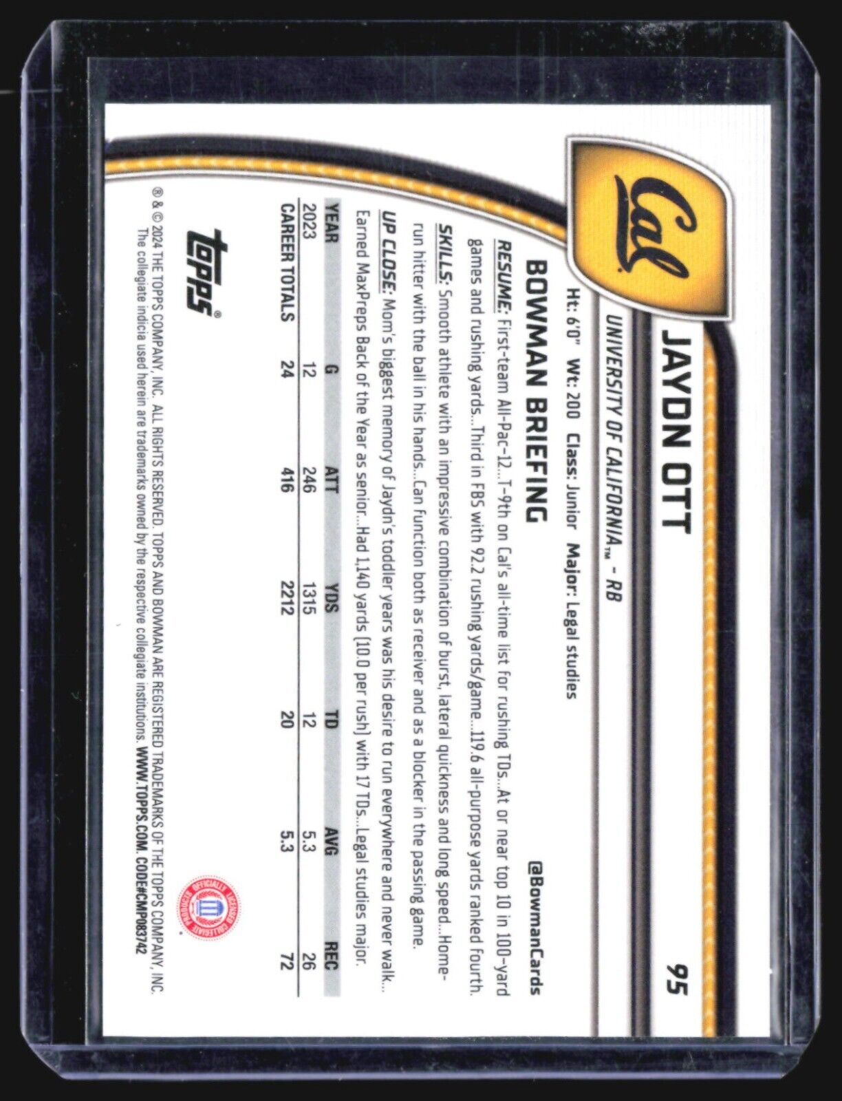 2024 Bowman Chrome U Jaydn Ott Aqua Refractor /299 #95