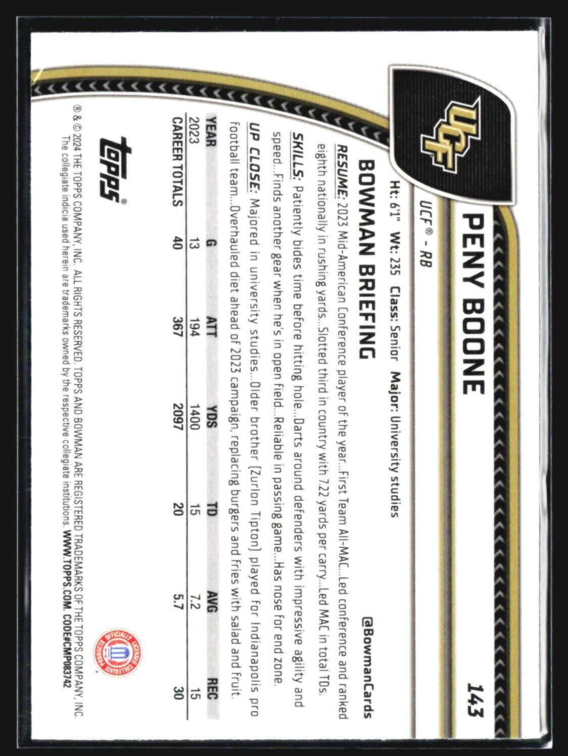 2024 Bowman Chrome U Peny Boone 1st Silver Shock #143