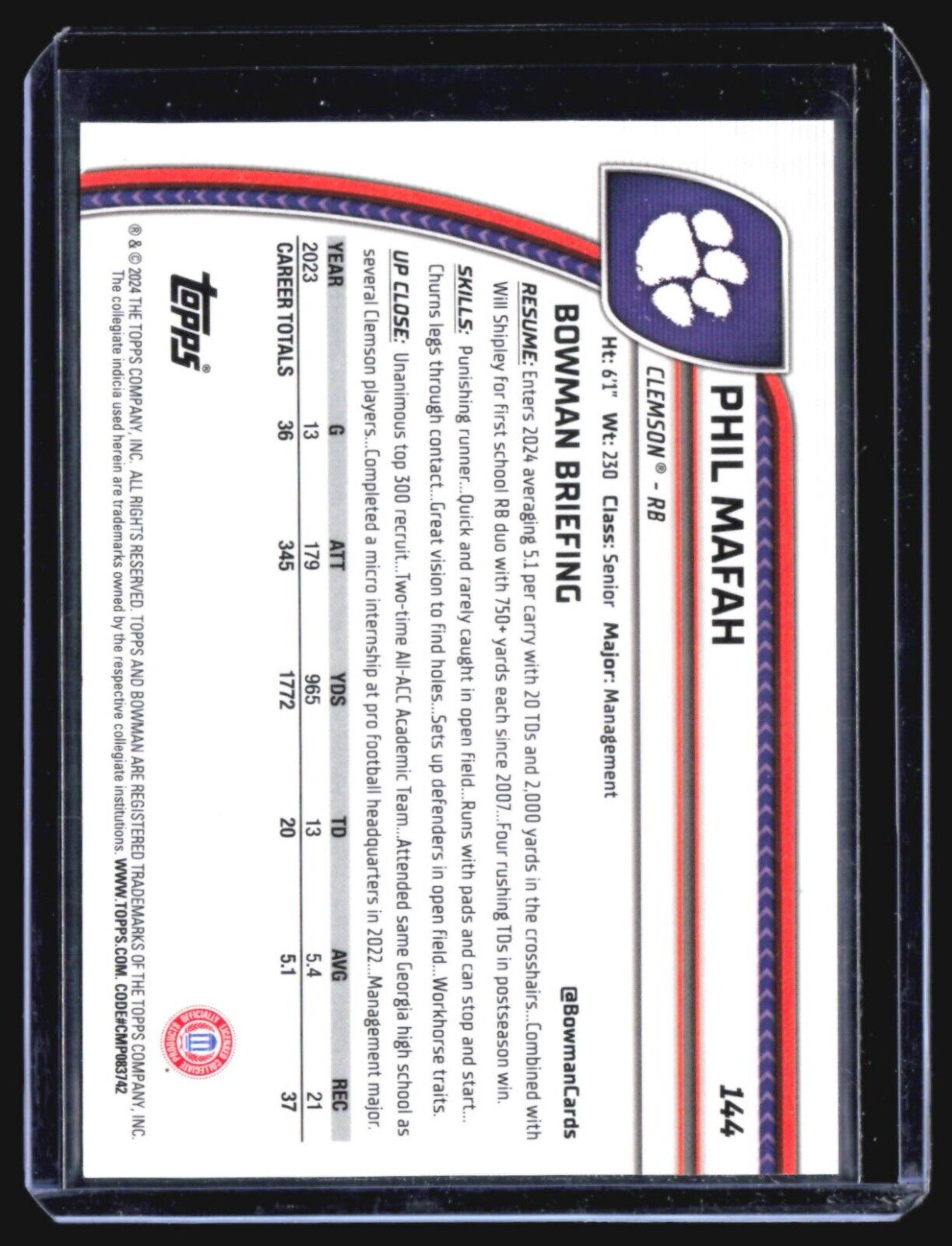 2024 Bowman Chrome U Phil Mafah Pink Refractor /150 #144