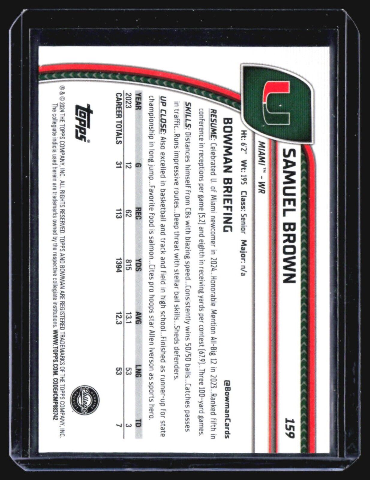 2024 Bowman Chrome U Samuel Brown 1st Aqua Speckle /275 #159