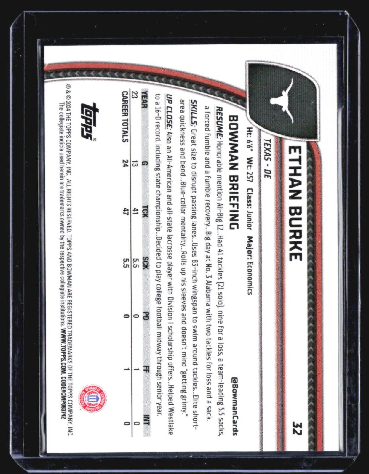 2024 Bowman Chrome U Sapphire Ethan Burke Gold 1st /50 #32