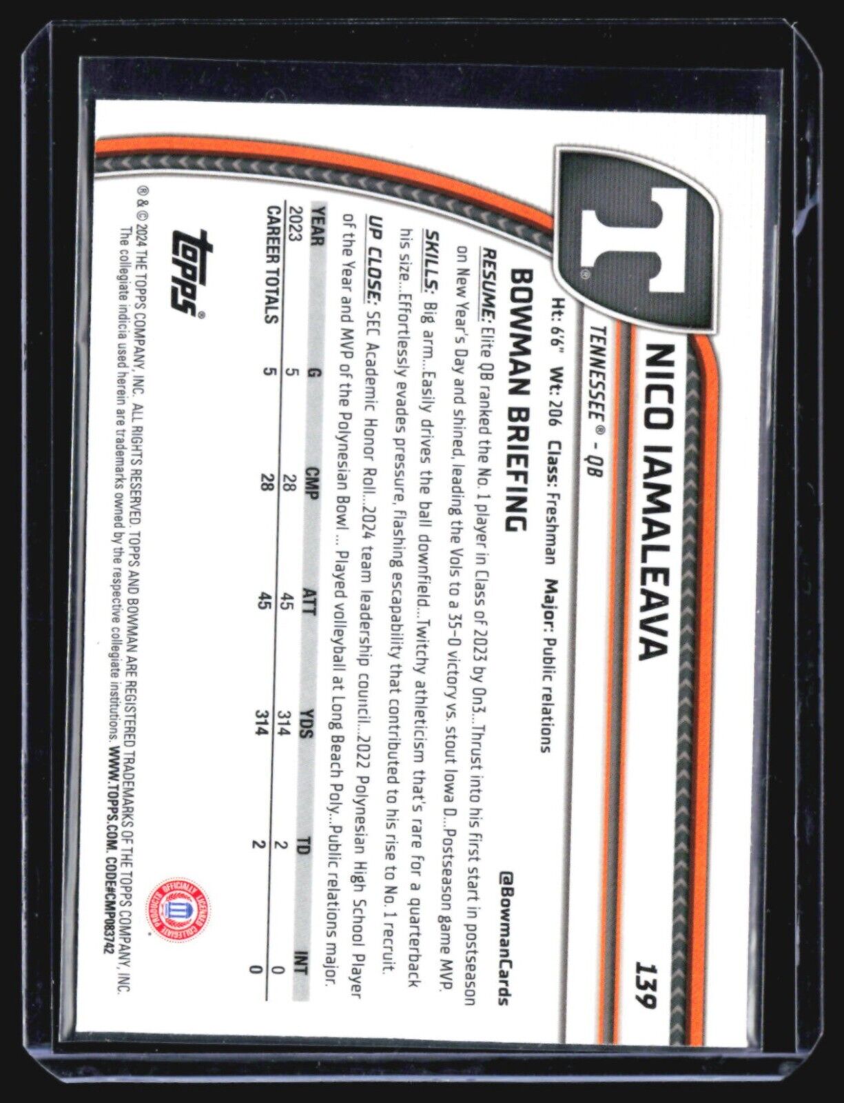 2024 Bowman Chrome U Sapphire Nico Imaaleava 1st #139