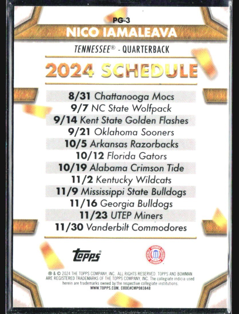2024 Bowman Chrome University Nico Iamaleava Path to Glory Black Refractor /10