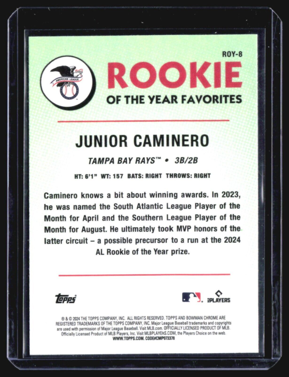 2024 Bowman Mega Box Chrome Rookie of the Year Favorites #ROY-8 Junior Caminero