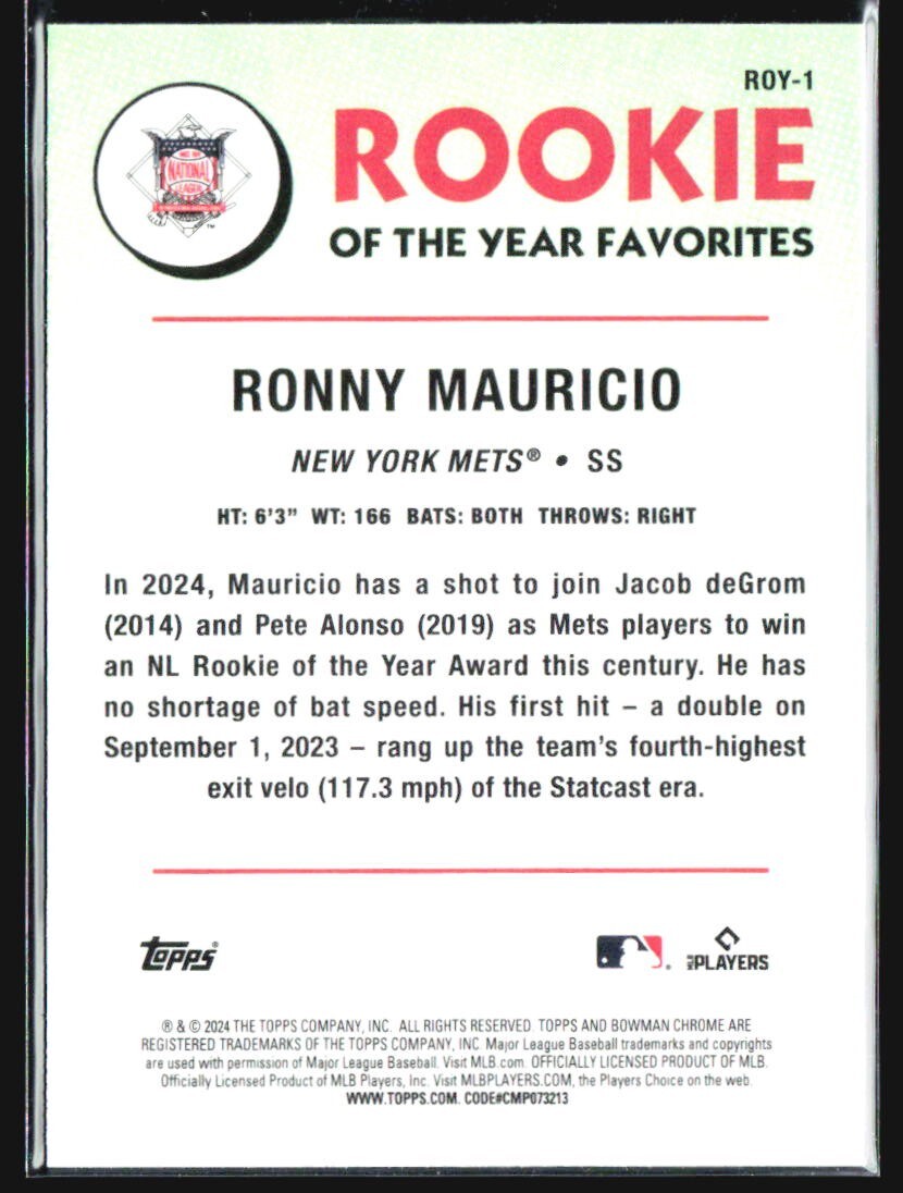 2024 Bowman - Rookie of the Year Favorites Ronny Mauricio #ROY-1 (RC)