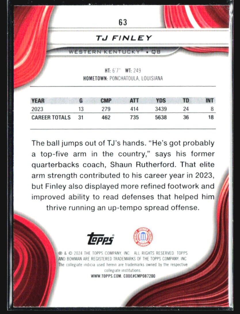 2024 Bowman U Best Tj Finley Pink Lava /100 #63