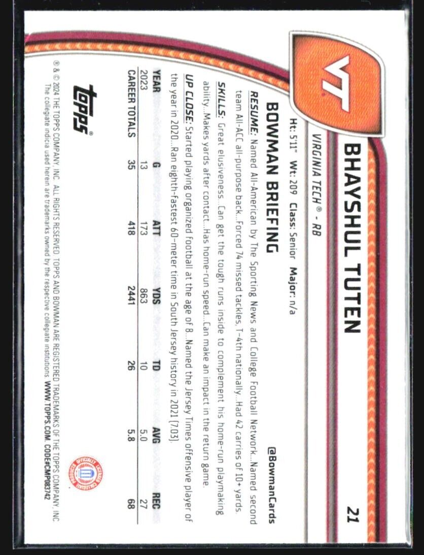 2024 Bowman U Chrome Brayshul Tuten 1st Purple Shimmer #21
