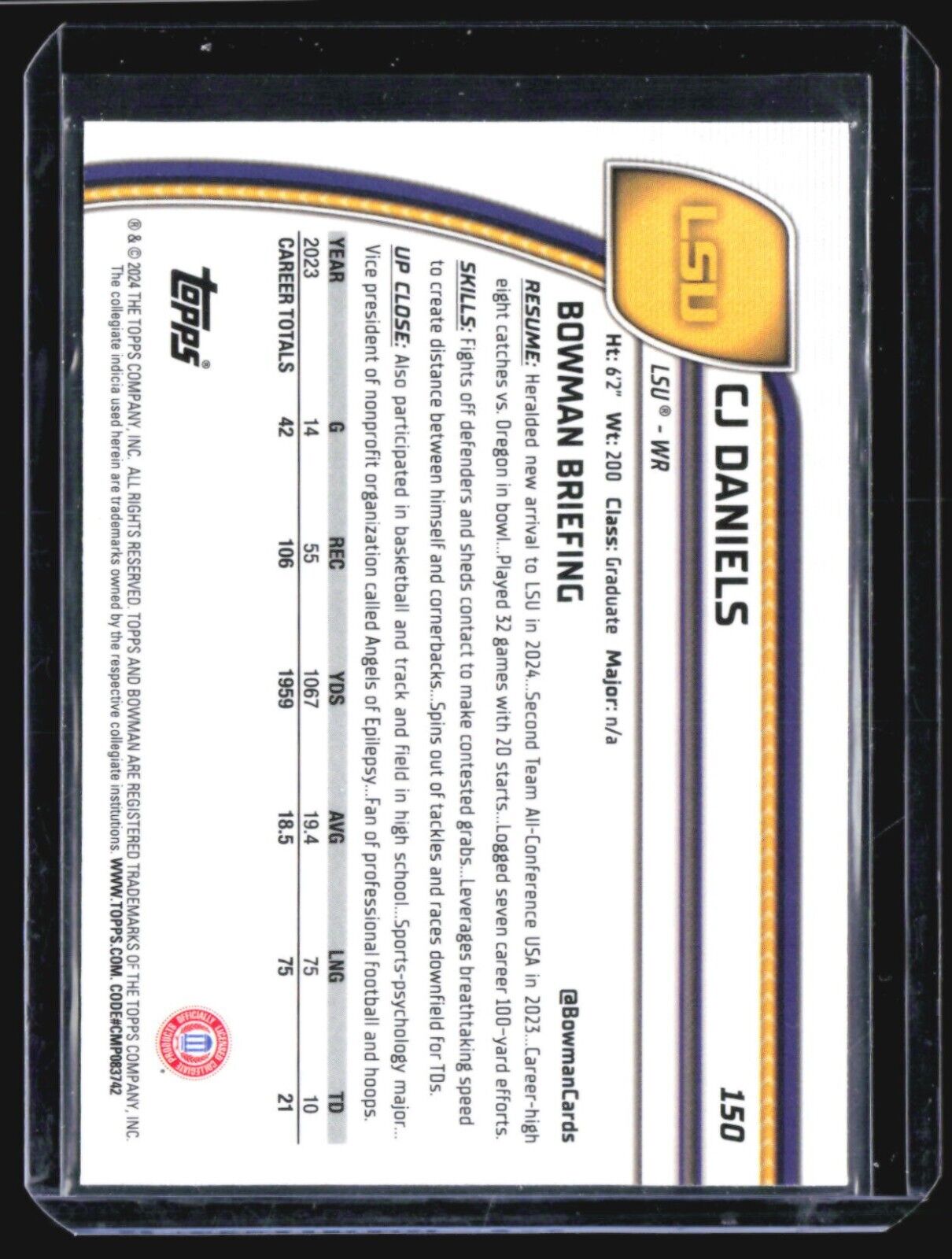 2024 Bowman U Chrome CJ Daniels 1st Purple Refractor /399 #150