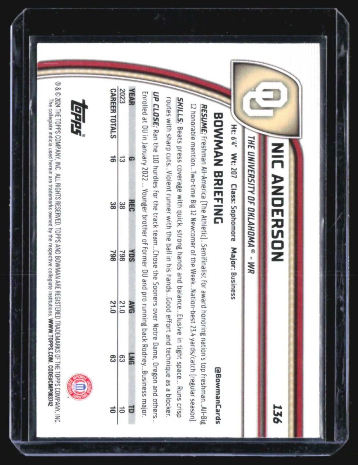 2024 Bowman U Chrome Nic Anderson 1st Blue Speckle /175 #136