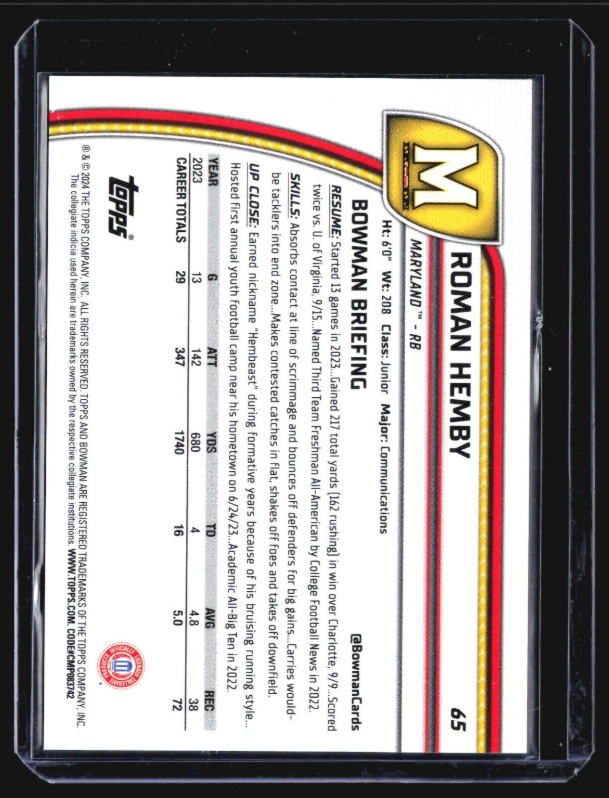 2024 Bowman U Chrome Roman Hemby 1st Black & White Stealth /48 #65