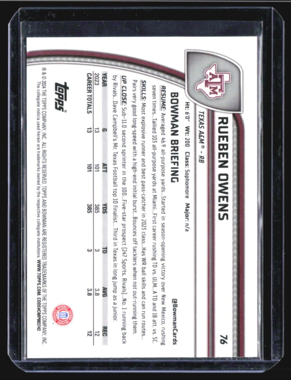 2024 Bowman U Chrome Rueben Owens Gold Refractor /50 #76