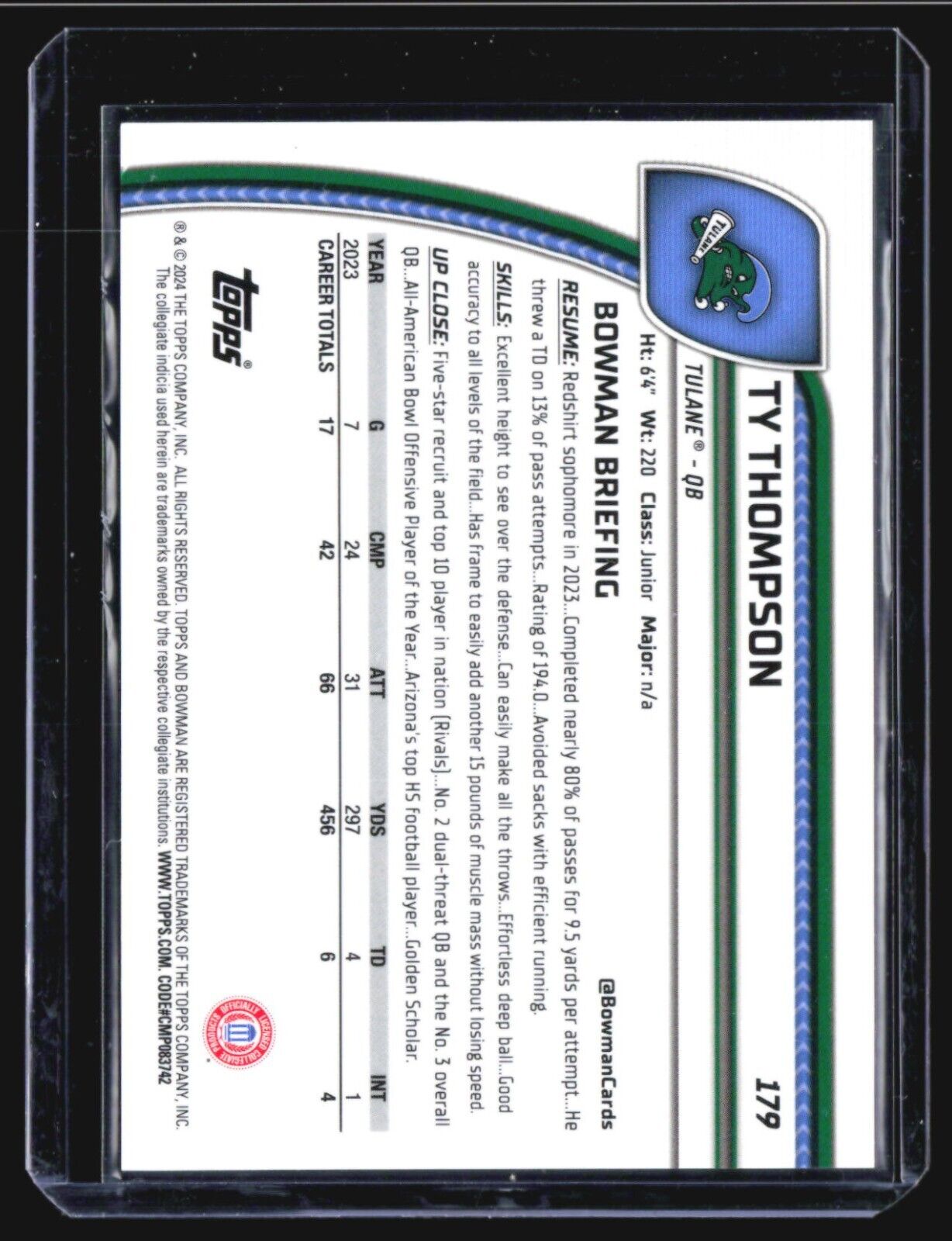 2024 Bowman U Chrome Ty Thompson 1st Black & Gold Stealth /24 #179