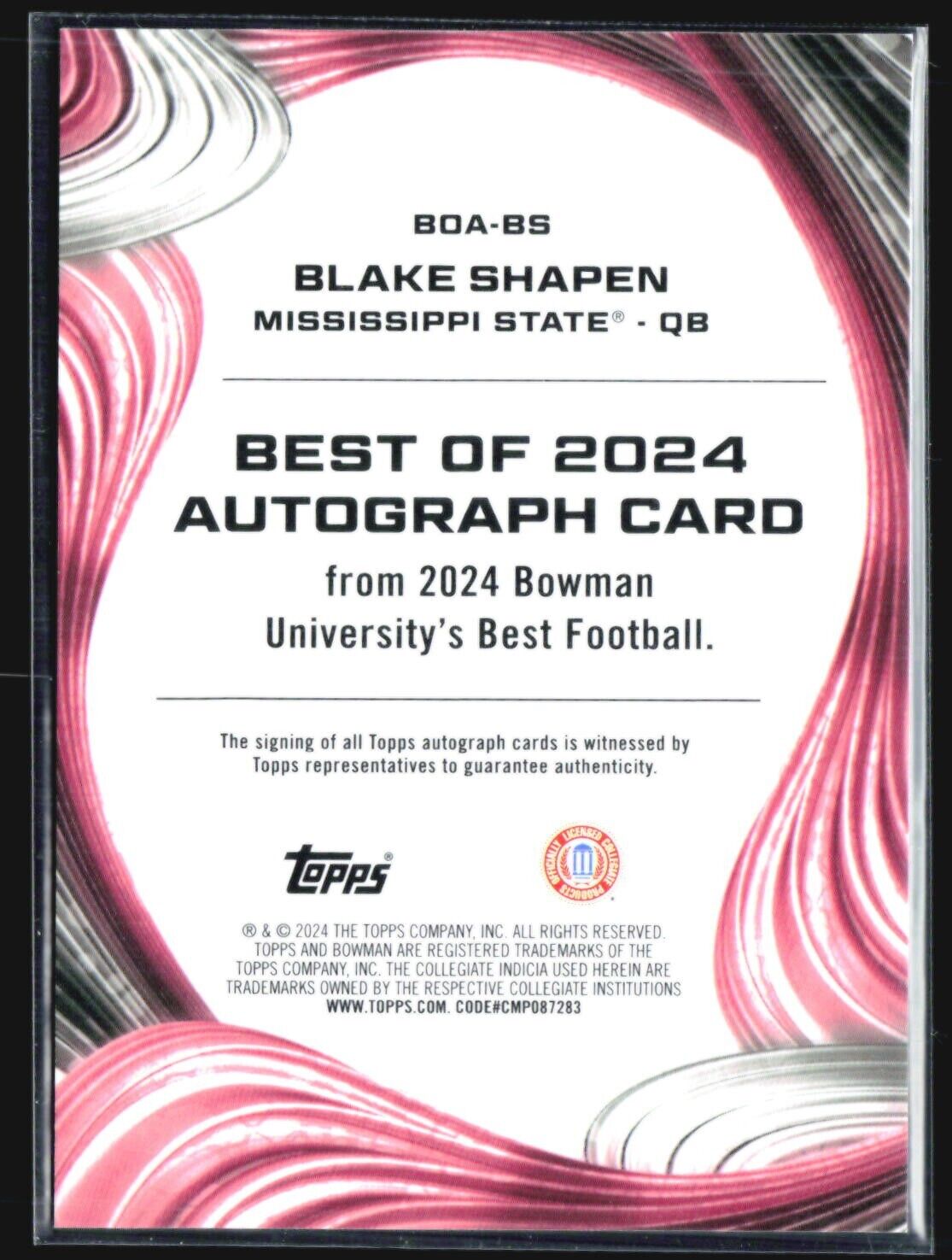 2024 Bowman University Best Blake Shapen Auto White /5 #BOA-BS