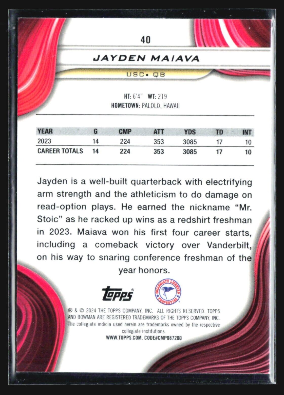 2024 Bowman University Best Jayden Maiava Green /99 #40