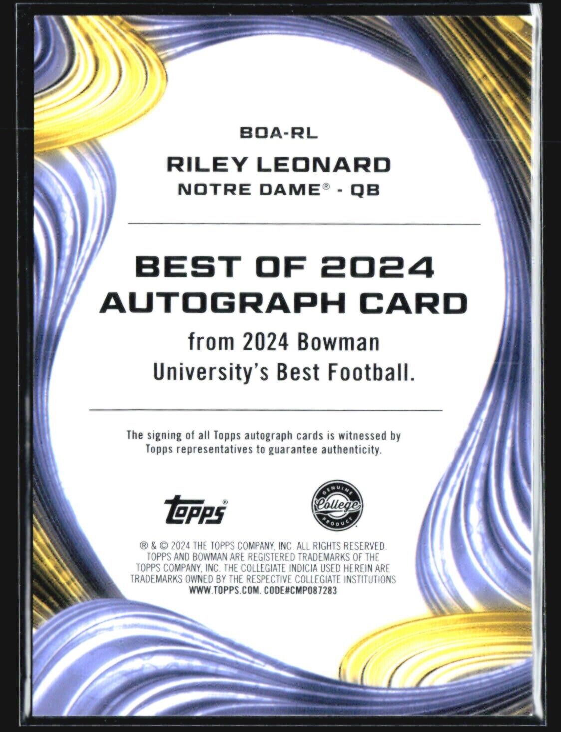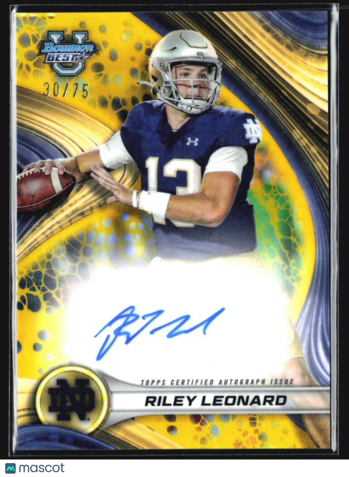 2024 Bowman University Best Riley Leonard Yellow Refractor Auto /75 #BOA-RL