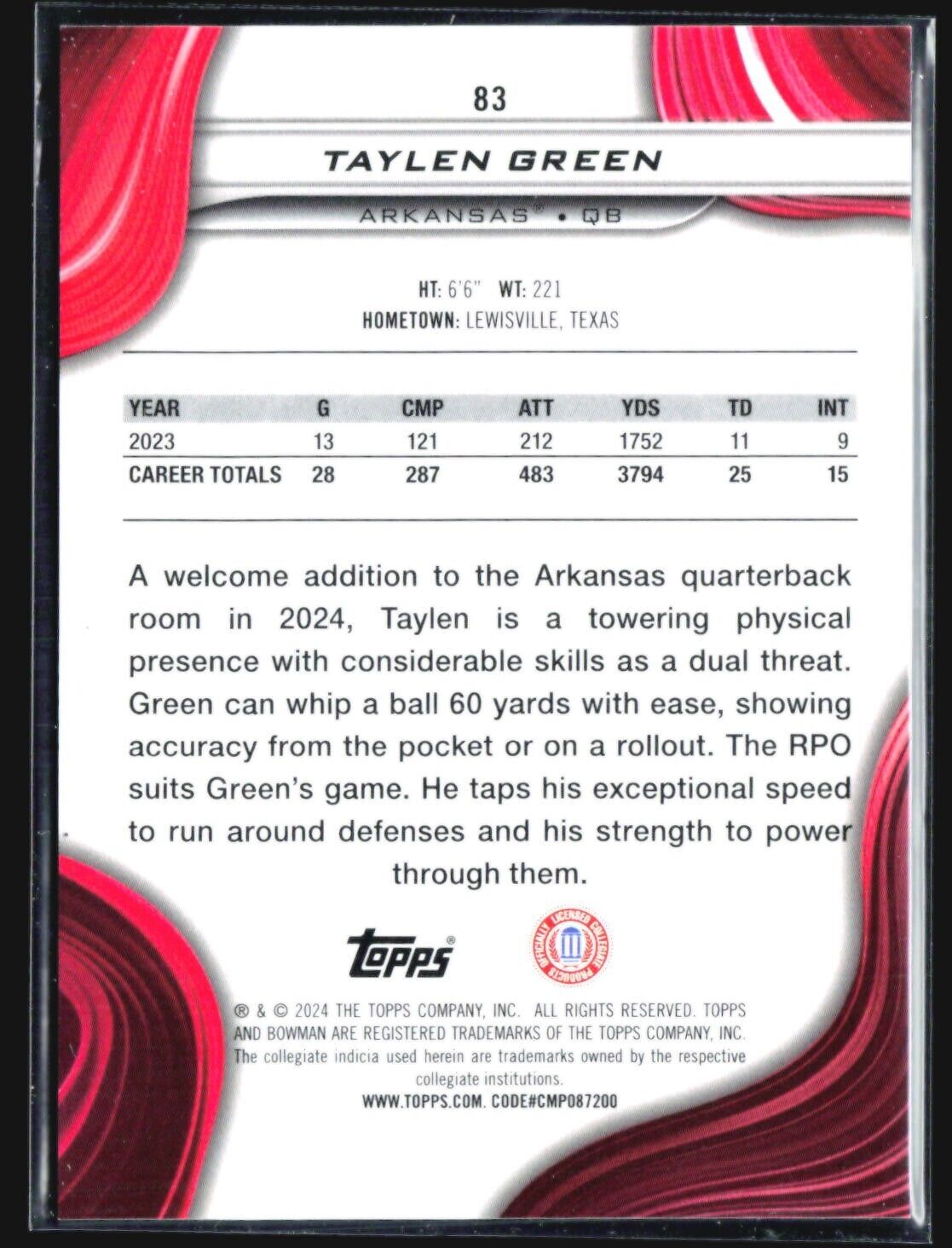 2024 Bowman University Best Taylen Green orange Refractor /25 #83
