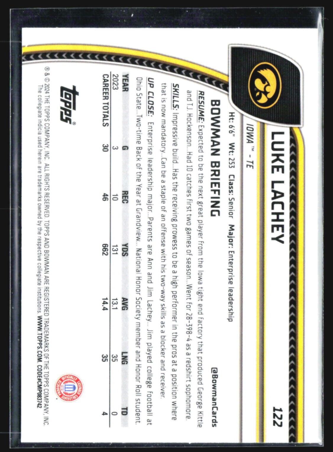 2024 Bowman University Chrome - #122 Luke Lachey (RC) 1st Teal Lava