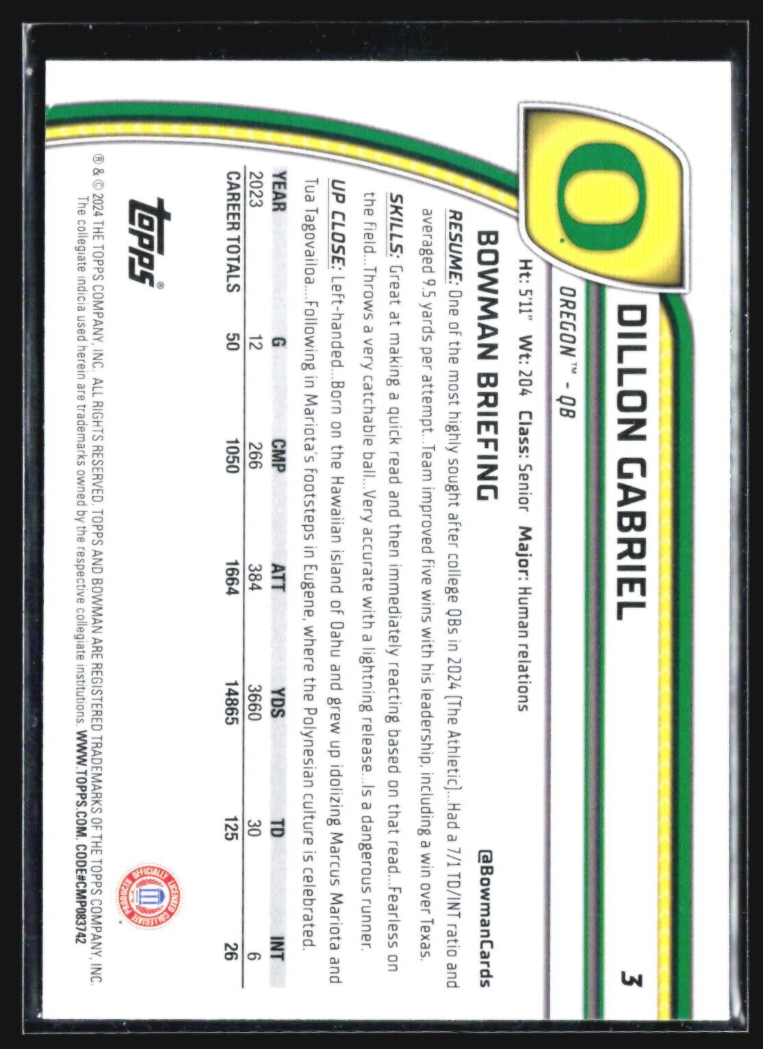 2024 Bowman University Chrome - #3 Dillon Gabriel (RC)