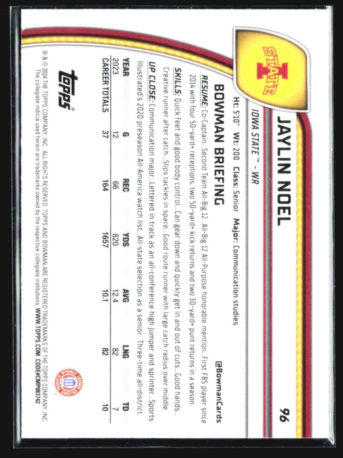 2024 Bowman University Chrome - #96 Jaylin Noel (RC) Stealth