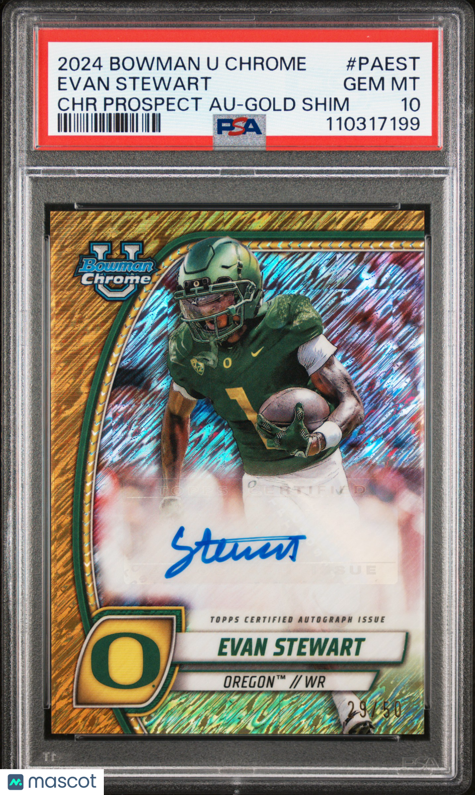 2024 Bowman University Chrome Auto Evan Stewart #PAEST Gold Shimmer PSA 10