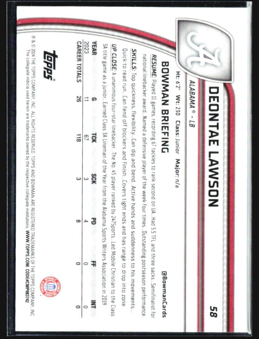 2024 Bowman University Chrome Deontae Lawson Black & Gold Stealth /24 #58