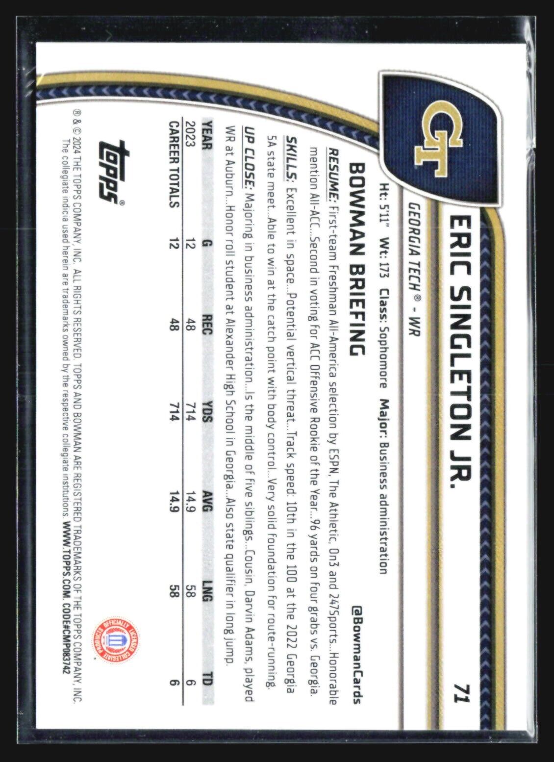 2024 Bowman University Chrome Eric Singleton Aqua Speckle /275 #71