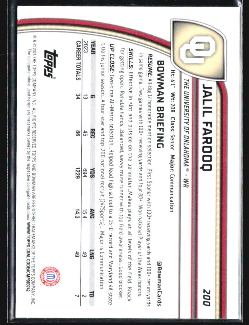 2024 Bowman University Chrome Jalil Farooq Black & Gold Stealth /24 #200