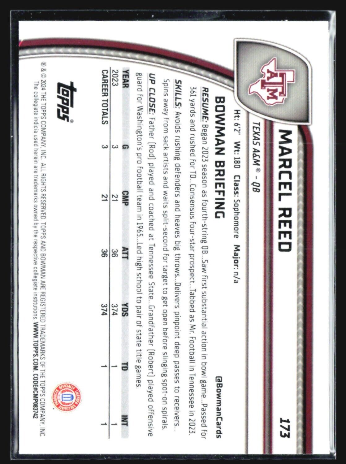 2024 Bowman University Chrome Marcel Reed #173 Pink Lava