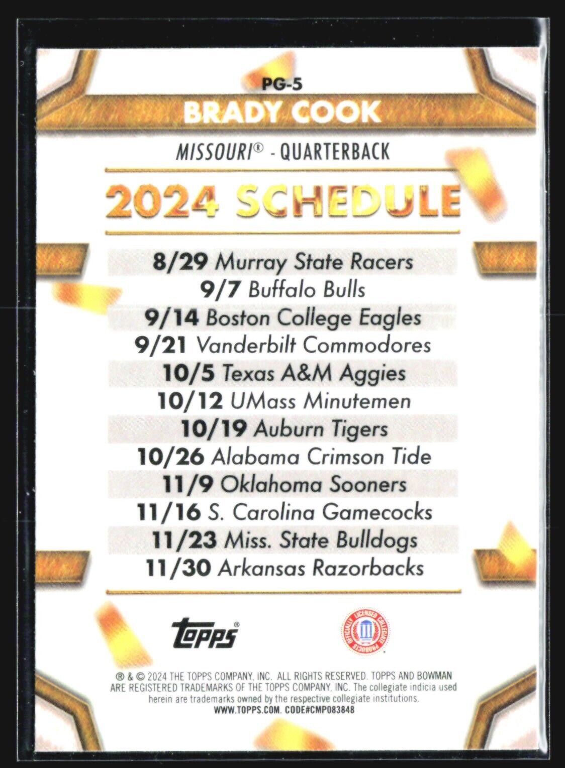 2024 Bowman University Chrome - Path to Glory #PG-5 Brady Cook (RC)