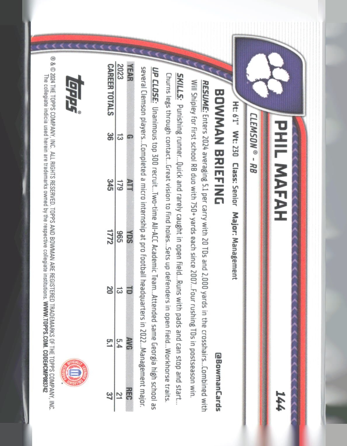 2024 Bowman University Chrome Phil Mafah Aqua Speckle /275 #144