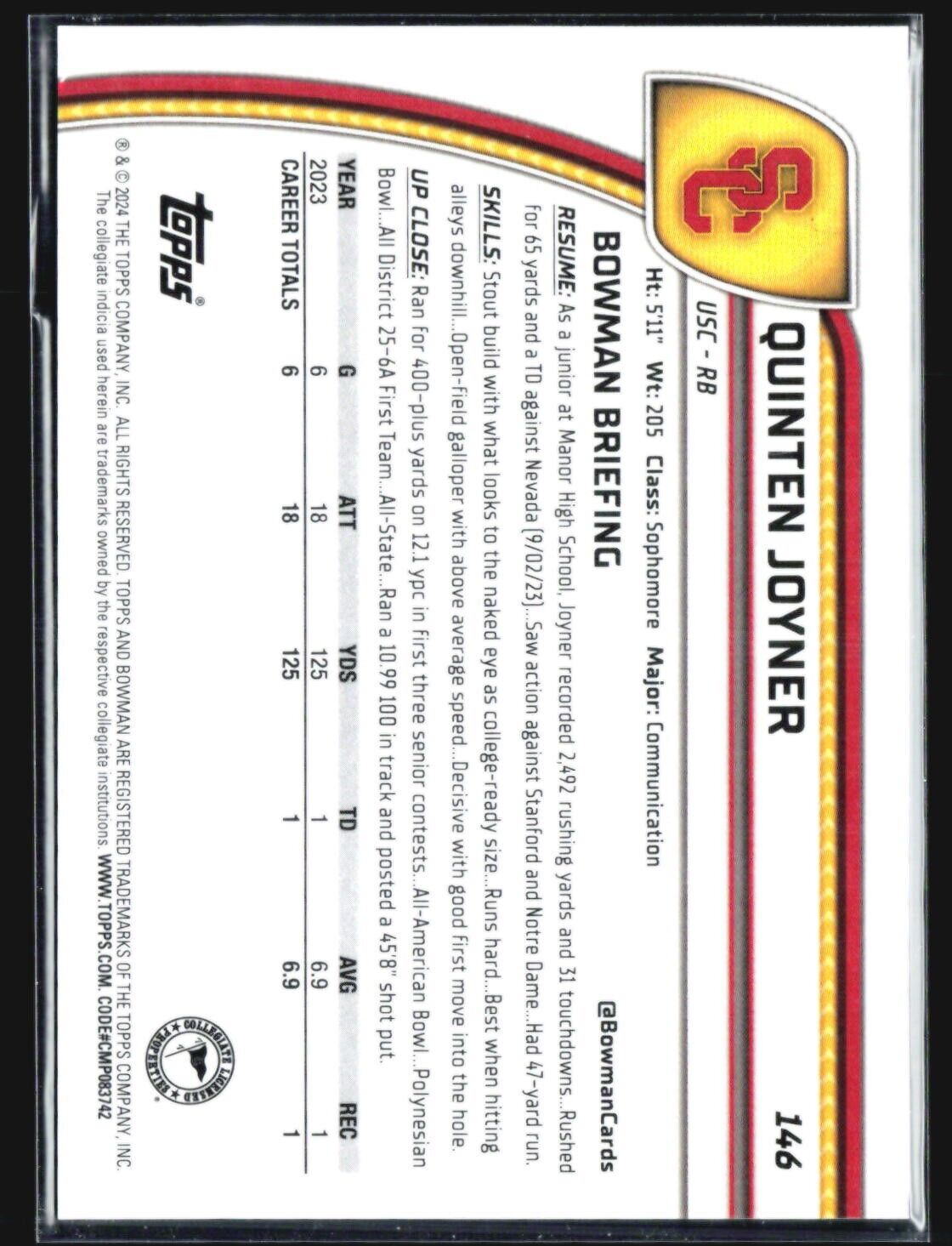 2024 Bowman University Chrome Quinten Joyner 1st Purple Speckle /375 #146