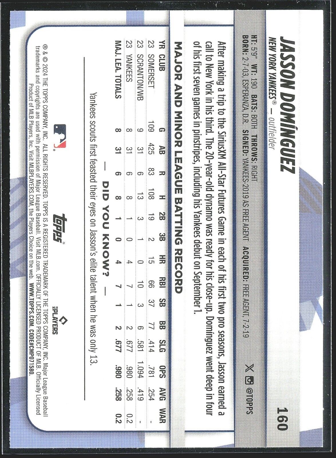 2024 Jasson Dominguez Topps Big League Rc Rookie #160 Yankees