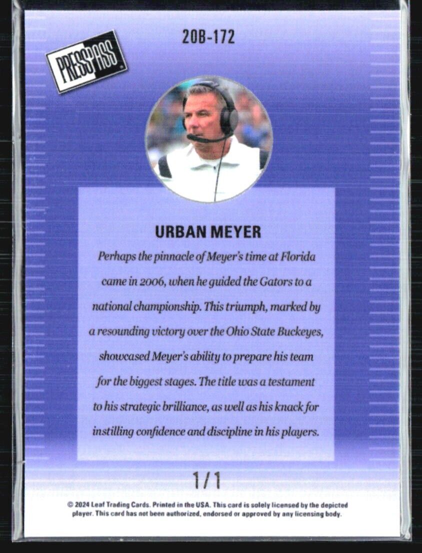 2024 Leaf Pro Set Urban Meyer 1/1 #20B-172