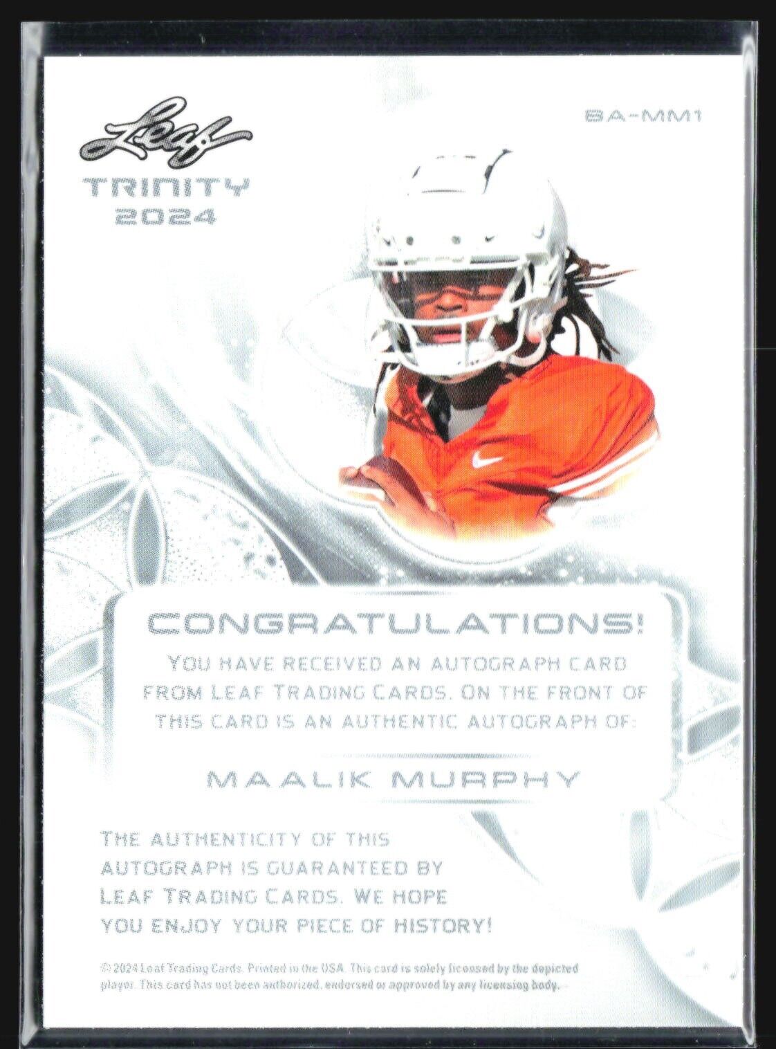 2024 Leaf Trinity Maalik Murphy Rc Auto /99 #BA-MM1